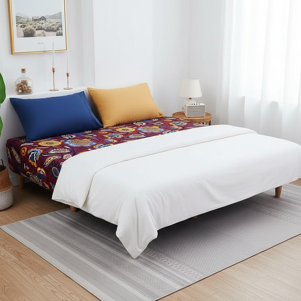 Cette housse de canapé-lit est spécialement adaptée aux futons et canapés sans accoudoirs. Disponible pour les modèles 2 ou 3 places, elle convient aux longueurs de 120 à 210 cm, largeurs de 90 à 120 cm et épaisseurs de coussin de 20 à 30 cm.