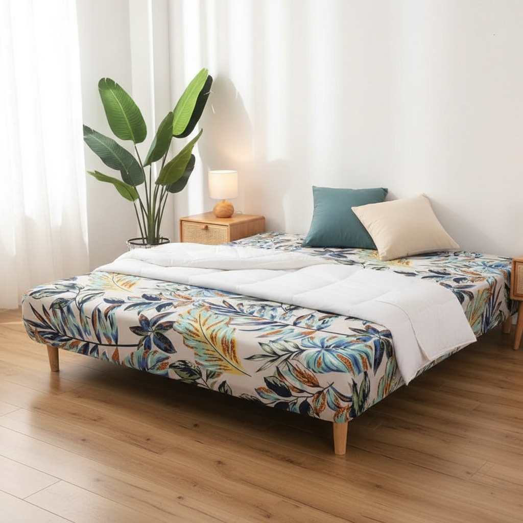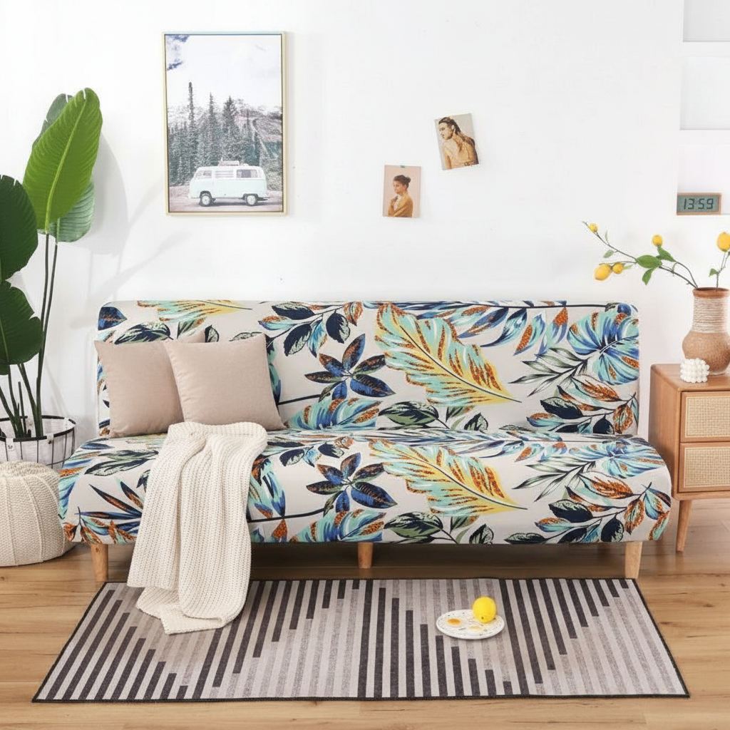 Transformez instantanément votre intérieur avec notre housse de clic-clac aux motifs de feuilles tropicales multicolores. Conçue à partir d'un matériau extensible à base de polyester tricoté, elle allie douceur et confort pour une protection optimale de votre canapé-lit. Idéale pour les saisons printanières et estivales, elle apporte une touche de fraîcheur et de dynamisme à votre pièce.Caractéristiques & compatibilités