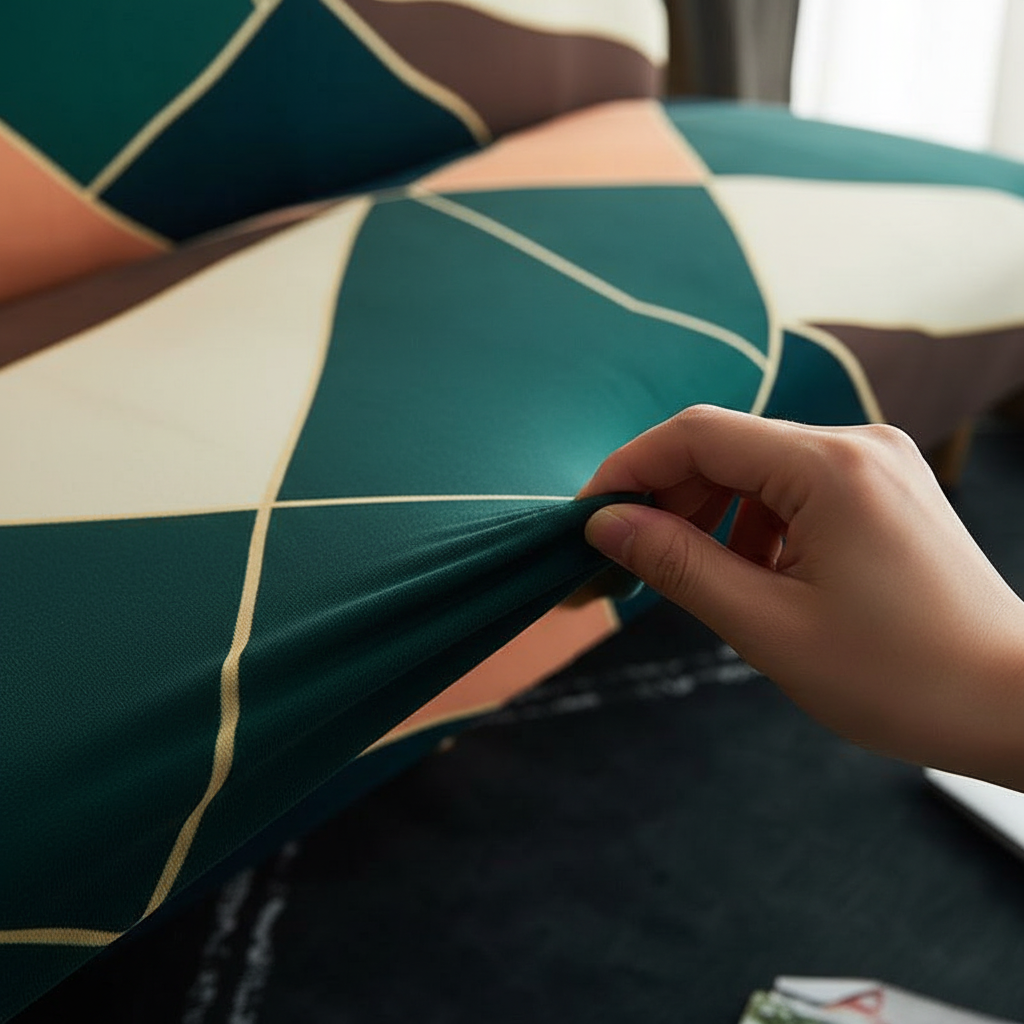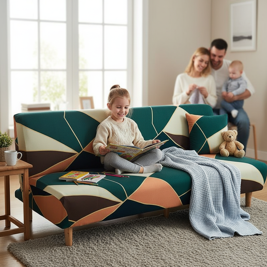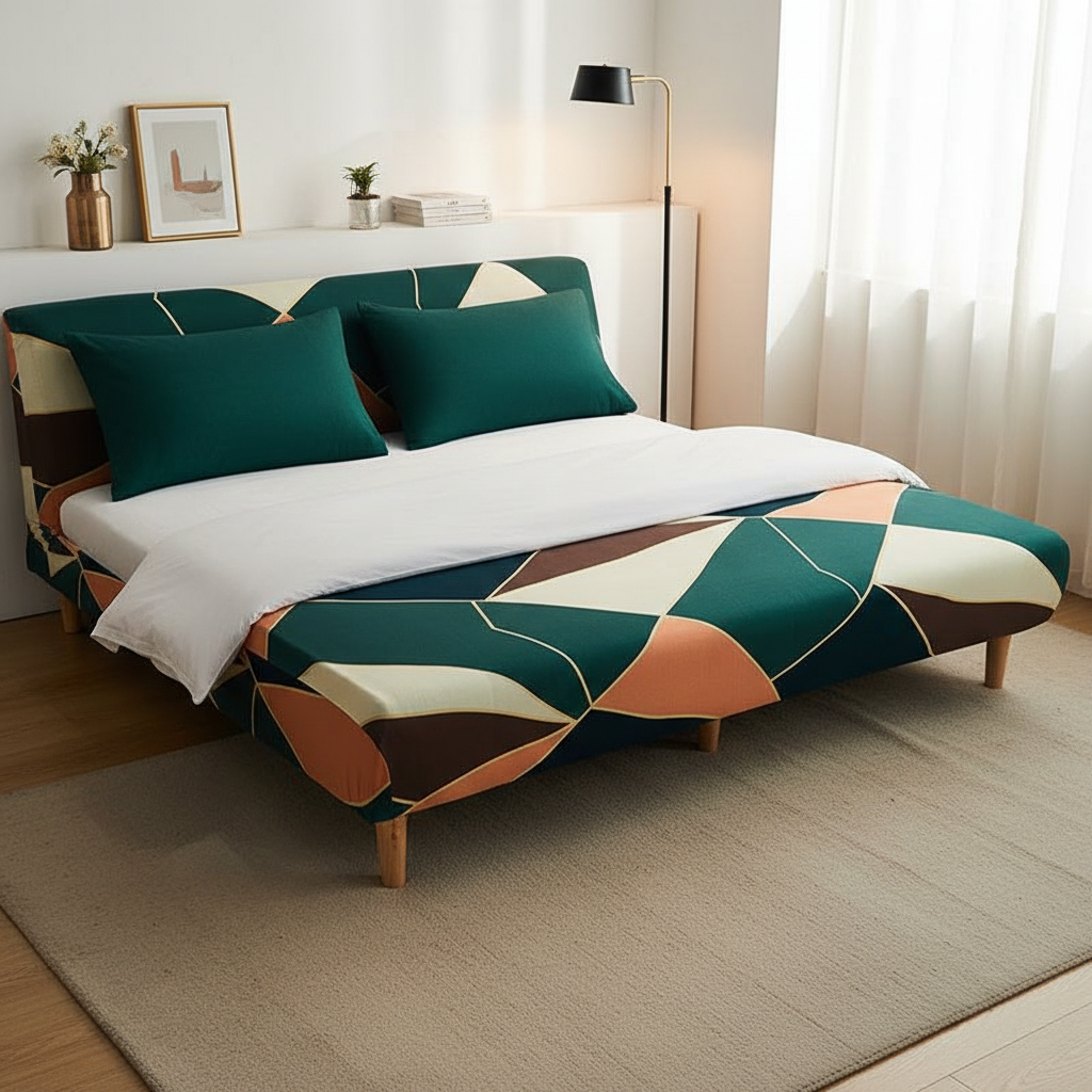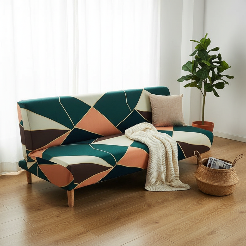 Transformez votre intérieur avec notre housse de clic-clac au motif géométrique moderne. Conçue en polyester extensible, elle offre une protection complète et un toucher doux, parfaite pour rafraîchir votre canapé-lit sans accoudoirs.