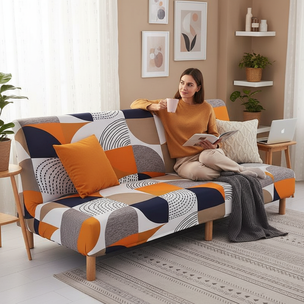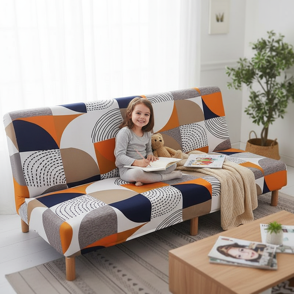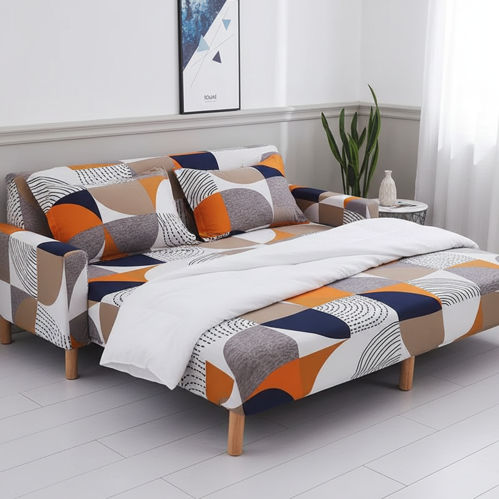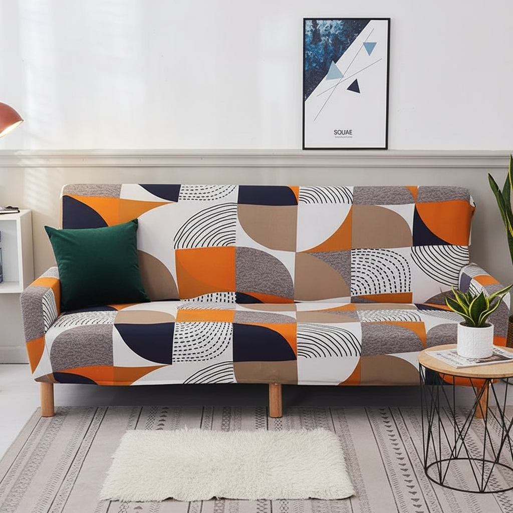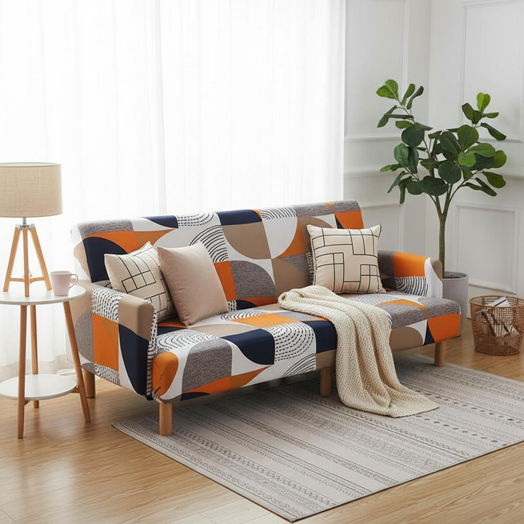 Transformez votre intérieur avec cette housse de clic-clac au motif géométrique orange, parfaite pour les saisons printanières et estivales. Conçue en 100% polyester tricoté de 130 gsm, elle apporte une touche de modernité et de confort tout en protégeant efficacement votre canapé-lit.Caractéristiques & compatibilités