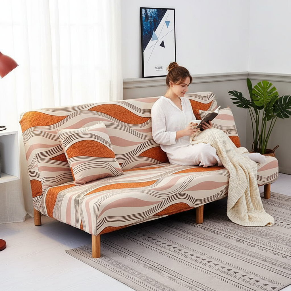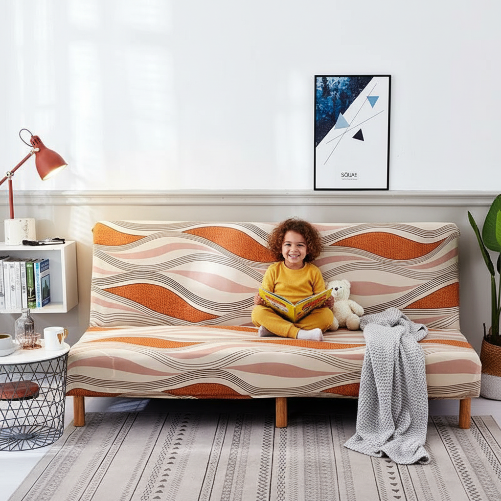 Transformez votre intérieur avec notre housse de clic-clac extensible, arborant un élégant motif de vagues géométriques aux teintes douces et modernes. Conçue pour épouser parfaitement les formes de votre mobilier, cette housse offre à la fois une protection optimale et un confort douillet grâce à son tissu tricoté composé de 92% de polyester et 8% de fibres extensibles.