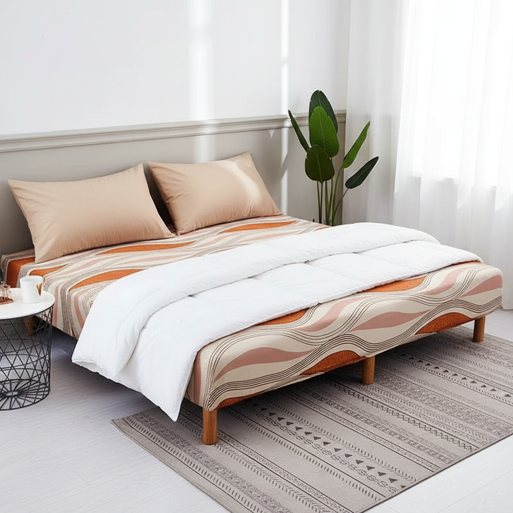- Style géométrique moderne avec un motif de vagues ondulantes.