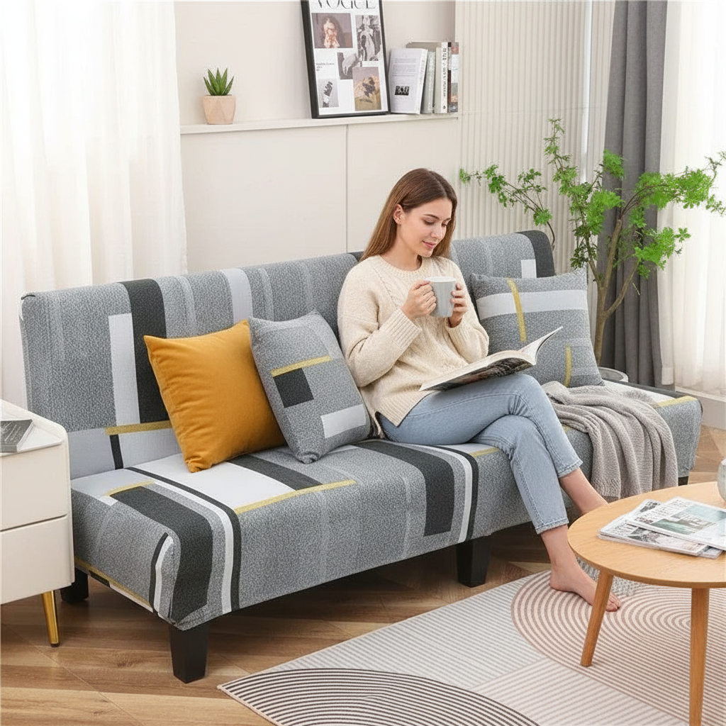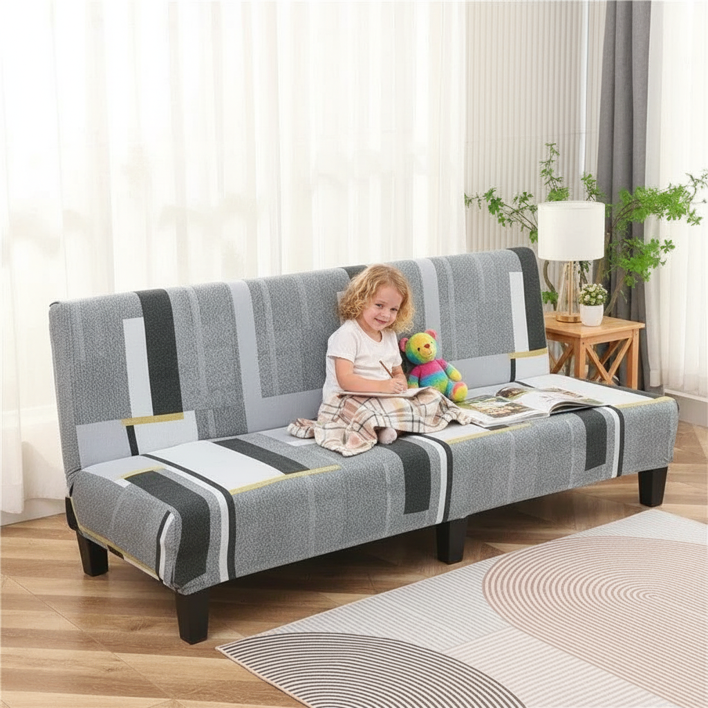 Cette housse sans accoudoirs s'adapte parfaitement aux clic-clac et canapés-lits de 120 cm à 200 cm de longueur. Elle convient également aux canapés, futons, et canapés-lits doubles, offrant une couverture intégrale pour diverses configurations de mobilier.