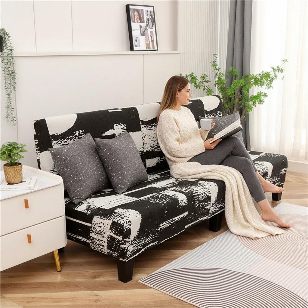 Transformez votre espace avec notre housse de clic-clac imprimée noire et blanche au style géométrique moderne. Conçue en 100 % polyester brossé, elle offre une protection complète et un toucher doux, parfaite pour rafraîchir votre intérieur pour le printemps et l'été.