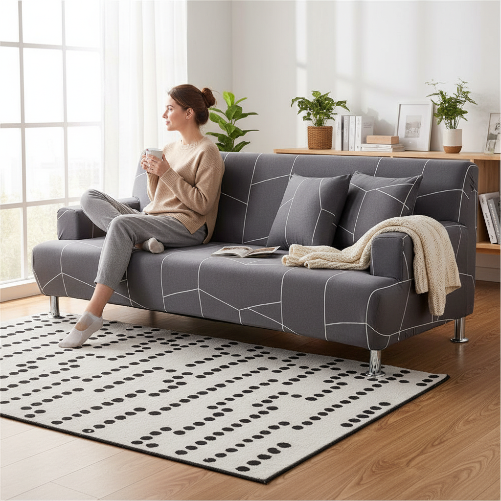 Optez dès maintenant pour cette housse de canapé-lit pratique et élégante pour rafraîchir votre intérieur en un clin d'œil. Profitez d'une installation rapide et d'un entretien sans effort.
