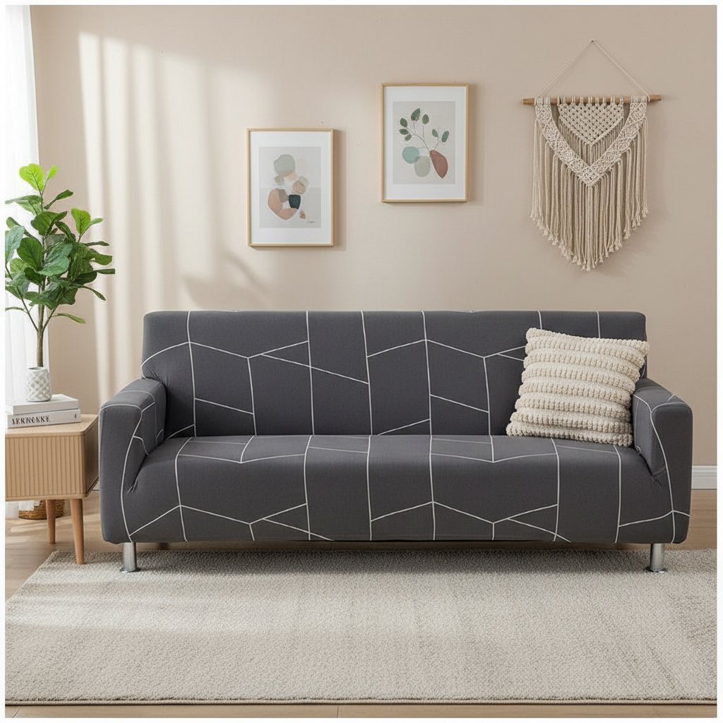 Transformez l'apparence de votre intérieur avec notre housse de clic-clac en polyester extensible, arborant un motif géométrique anthracite moderne. Conçue pour épouser parfaitement les formes de votre canapé-lit, elle offre une protection complète tout en apportant une touche de style contemporain à votre espace.