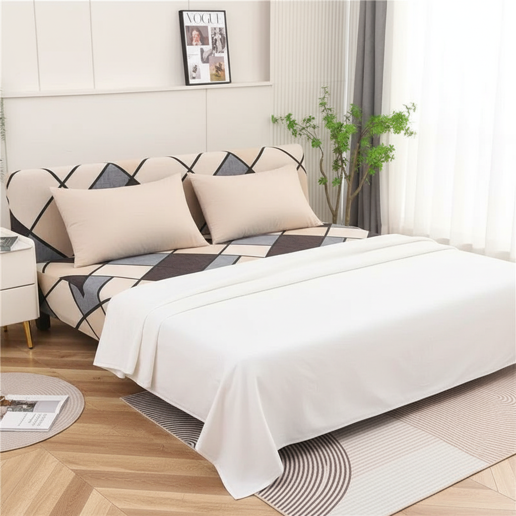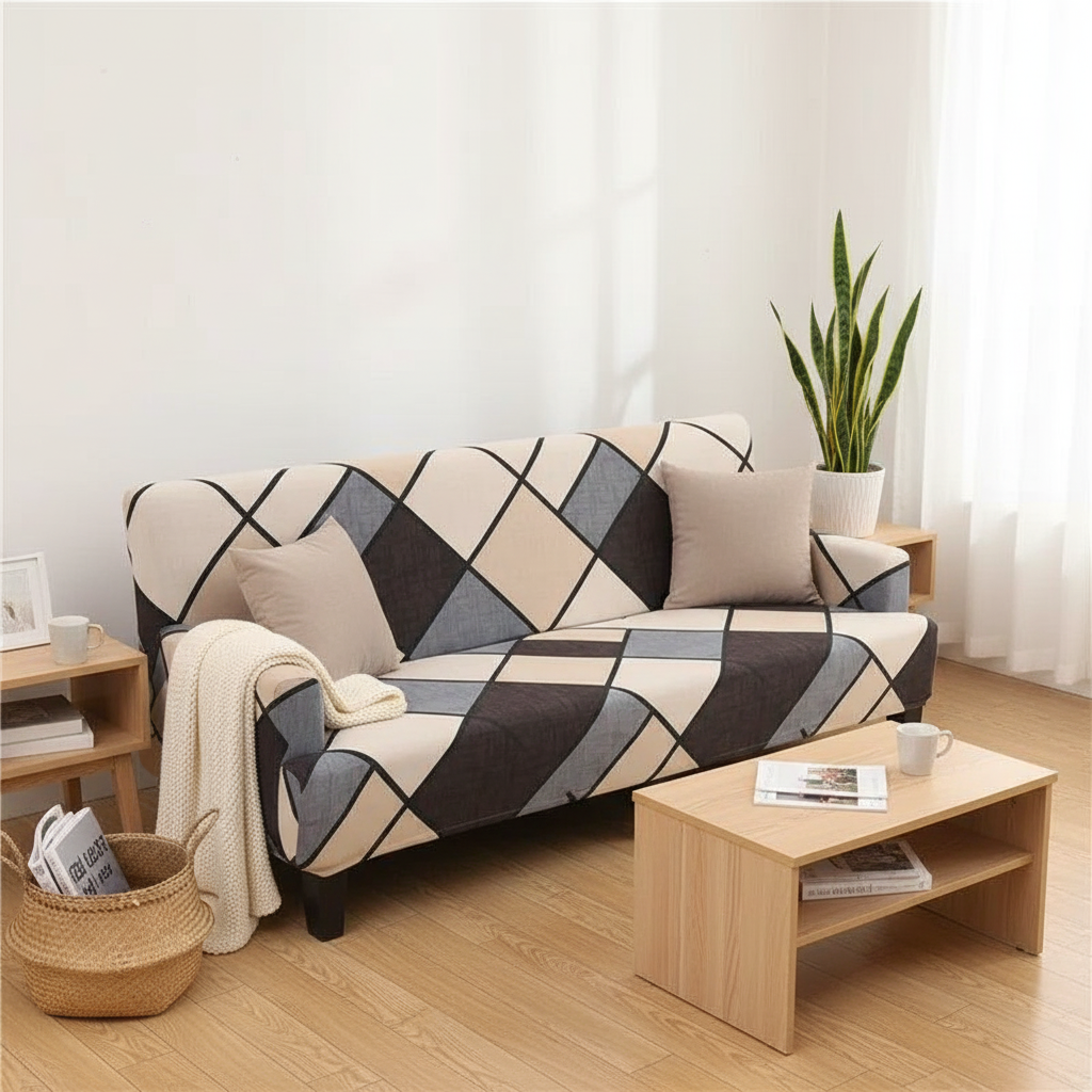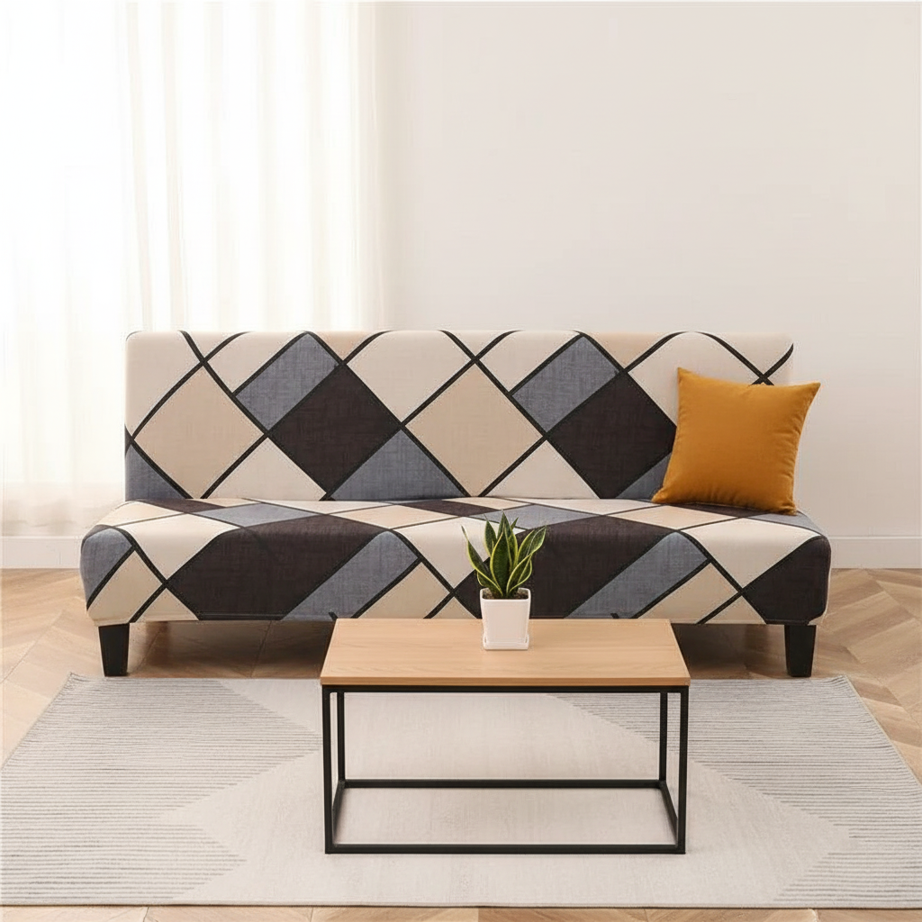 Transformez l'apparence de votre intérieur avec notre housse de clic-clac extensible, conçue pour apporter style et protection. Son tissu résistant aux motifs losanges géométriques dans des tons harmonieux de beige, gris et marron s'adapte parfaitement à votre canapé-lit, lui offrant une seconde vie et un look moderne en toute saison.